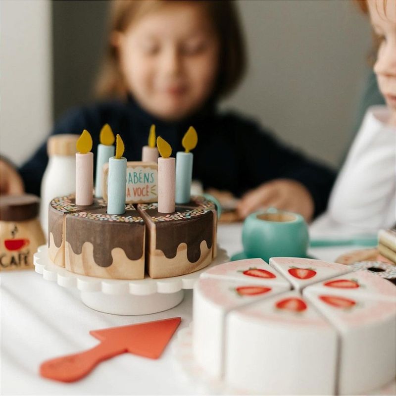 BRINQUEDO DE MADEIRA - BOLO FATIADO CHOCOLATE COM VELA