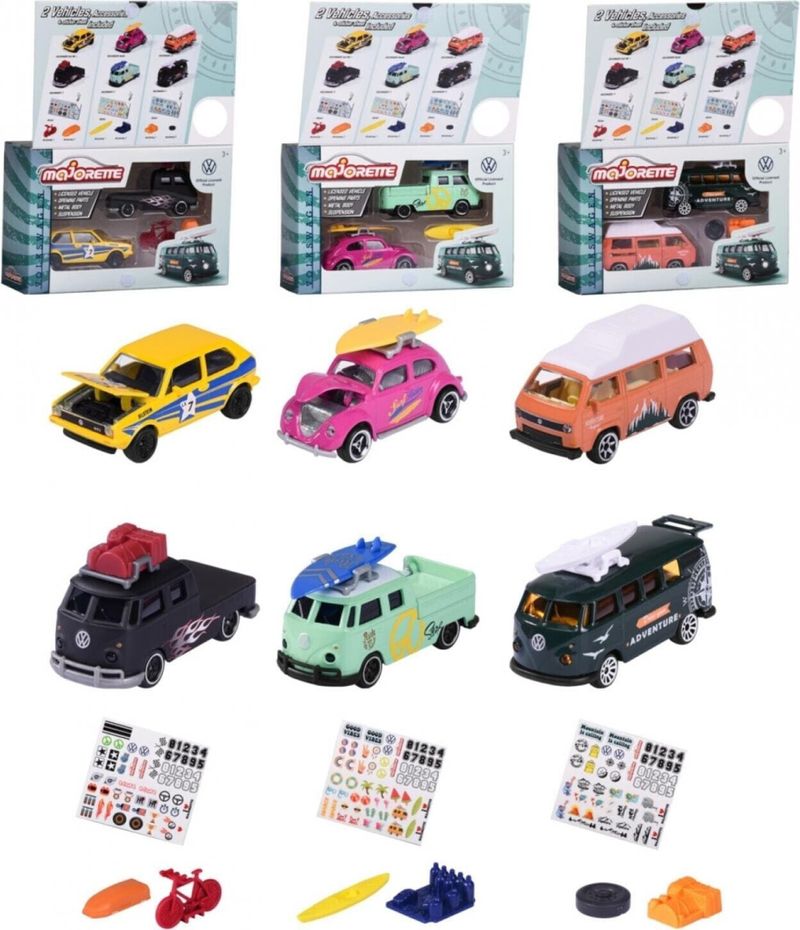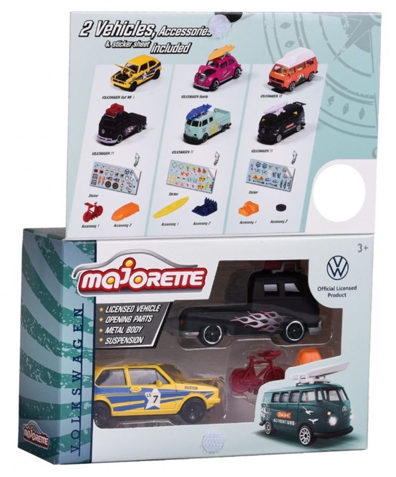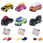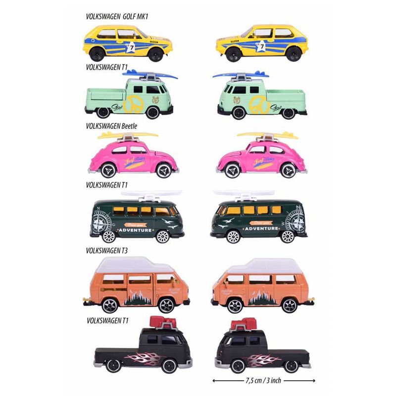Coleção c/ 6 Miniaturas Volkswagen The Originals Premium Cars BoxMarca do produto: MajoretteColeção: Volkswagen The Originals Premium CarsEscala: 1/64 (de 7,5 a 8 cm de comprimento)Miniatura em Metal Fundido (Die-Cast) com partes de plástico.Carros com roda livre.Alguns Veículos possuem partes móveis (abrem a porta ou tampa da caçamba)Esses carros de brinquedo oficialmente licenciados da Majorette são o presente perfeito para crianças pequenas e colecionadores de veículos modelo. A série consiste em 6 modelos VW, cada um com um design intrincadamente detalhado. Além do visual atraente, os veículos também possuem rodas giratórias e partes móveis. A série inclui modelos populares como o Volkswagen Käfer, Volkswagen T1, T3 e Volkswagen MK1 – todos com um design colorido. Os veículos também possuem peças que podem ser abertas e fechadas, o que ajuda a estimular a imaginação do seu filho e criar cenários de brincadeiras realistas. Cada caixa possui dois veículos de brinquedo VW da Majorette com folha de adesivos e acessórios!Esses modelos oficialmente licenciados de veículos VW são um presente perfeito para colecionadores e jovens fãs de veículos e apresentam um design incrivelmente detalhado.A Majorette é especializada em modelos realistas de veículos, todos com licenças oficiais da indústria automotiva, além de designs de metal premium para garantir uma longa vida útil.Miniaturas desta coleção:1 - Volkswagen Golf MK 12 - Volkswagen Beetle Fusca3 - Volkswagen T34 - Volkswagen T1 Kombi Preta5 - Volkswagen T1 Kombi Verde c/ Caiaque no Teto6 - Volkswagen T1 Kombi Verde c/ Pracha de Surf no Teto