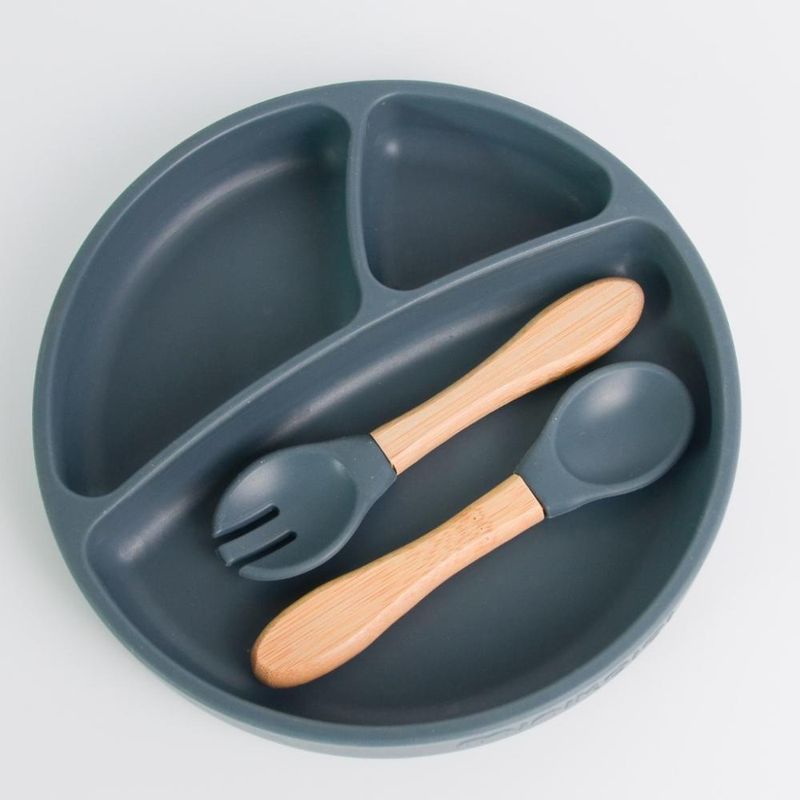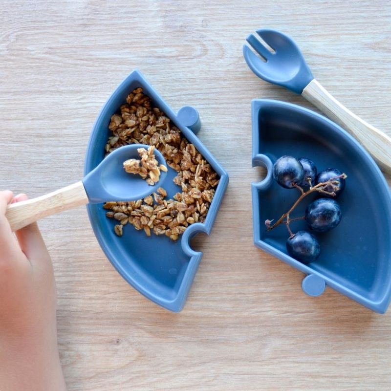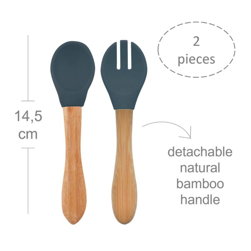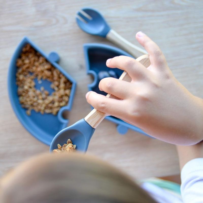 Colher e Garfo de Silicone e Bambu Dig In - Minikoioi