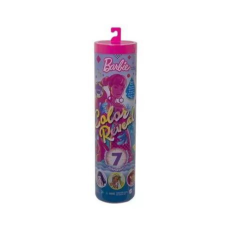 A Barbie® Color Reveal™ oferece uma experiência cheia de surpresas sete surpresas! A garantia é de uma boneca sempre fashion e na última moda, mas o look de cada boneca fica um mistério até ser revelado. A embalagem faz parte da diversão: puxe a fita para retirar a parte externa e relevar o tubo transparente. No interior, uma boneca Color Reveal™ colorida de branco e roxo e quatro sacos com surpresas dentro. Retire tudo e encha o tubo com água quente. Em seguida, coloque a boneca e agite. A água fica lilás e, quando a boneca é retirada, suas características são reveladas! Cada boneca tem uma combinação diferente de cor de olhos, cabelos coloridos esculpidos, tom de pele metálico, corpete decorado e pernas modeladas, mas as surpresas continuam… abra os sacos para descobrir um aplique de cabelo brilhante em rabo de cavalo, saia em padrão preto e branco e sapatos e brincos combinando! A mudança de cor nos lábios da boneca e no corpete decorado aumentam a surpresa e a diversão. Cada série tem um tema exclusivo as bonecas Color Reveal™ têm padrões ousados e cores brilhantes para criar um visual moderno e colorido, com cabelos e pernas modelados e aplique de cabelo brilhantes. Use o tubo para guardar estes e outros acessórios favoritos de Barbie®. Qual boneca você vai revelar? As crianças podem colecionar todas para misturar e combinar acessórios e aumentar as possibilidades! Cada produto é vendido separadamente, sujeitos a disponibilidade. A boneca não fica em pé sozinha. Cores e decorações podem variar.