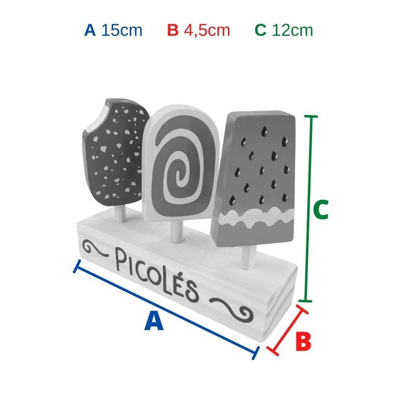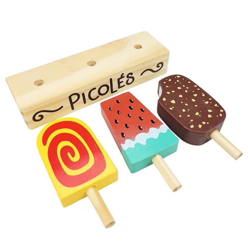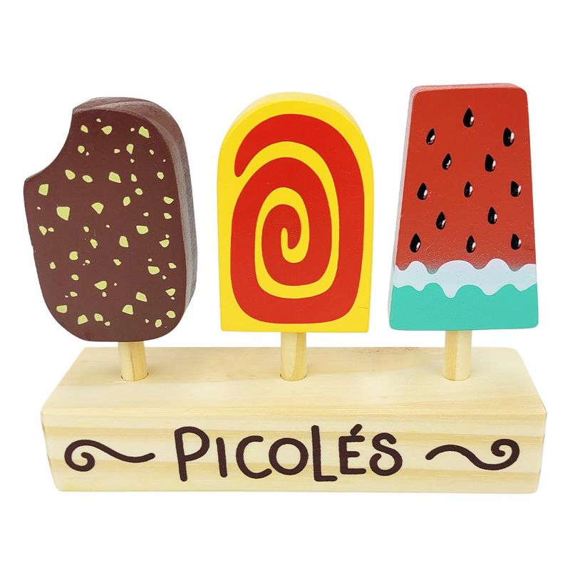 Conteúdo da Embalagem: 3 Picolés de Brinquedo e 1 Base de Madeira.