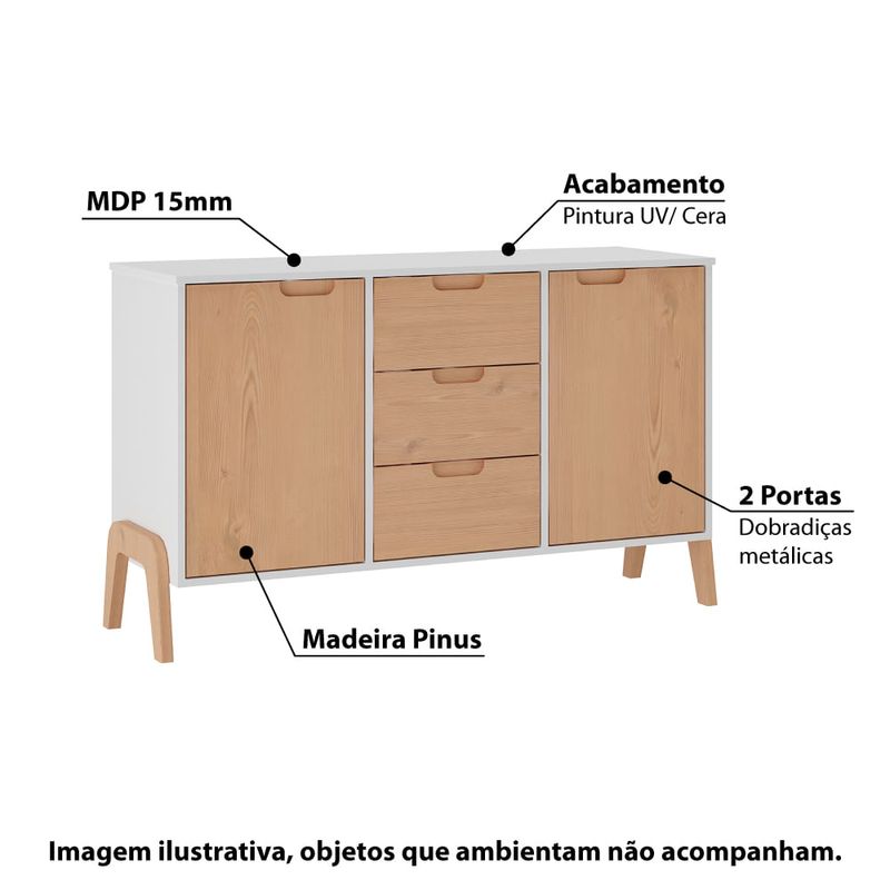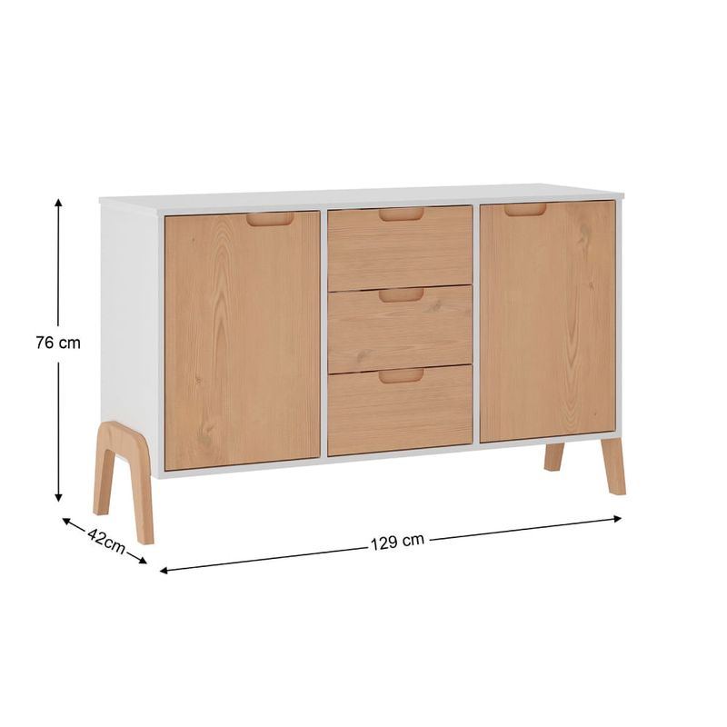 Cômoda com 2 Portas e 3 Gavetas - Branco/Pinus