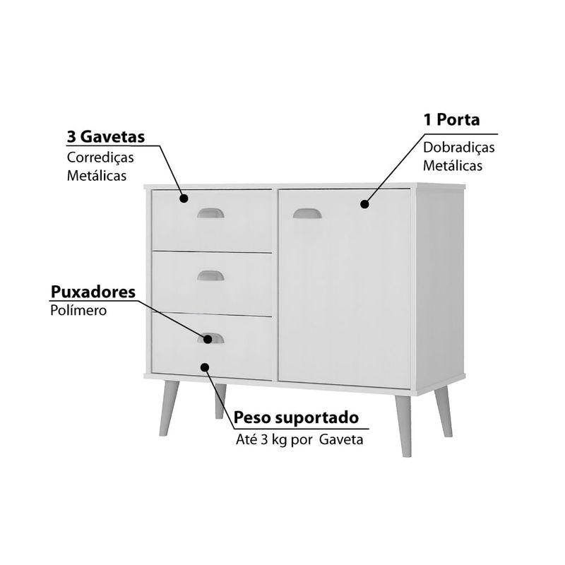 Cômoda com 3 Gavetas e 1 Porta - Branc