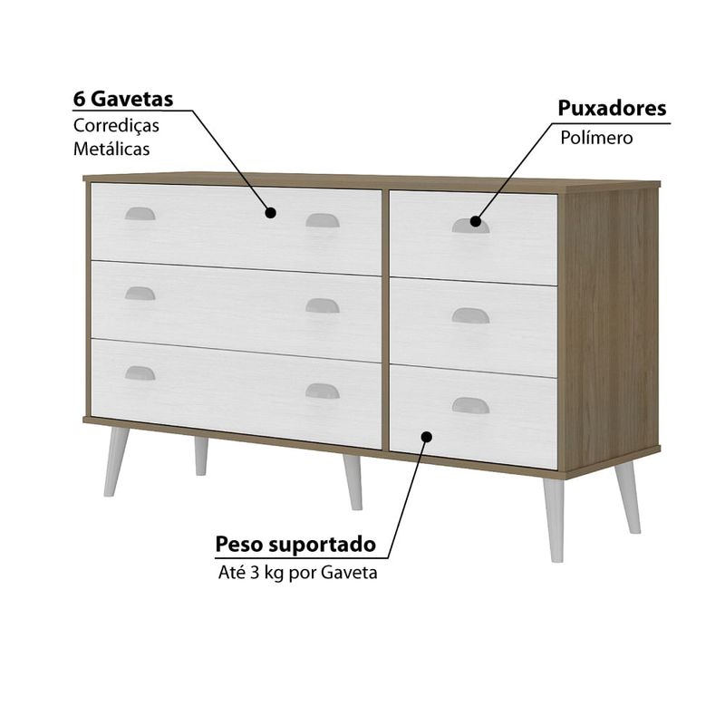 A Cômoda da Hecol é incrível! Uma forma discreta de trazer funcionalidade, praticidade e muito bom gosto ao quarto. De estrutura reta, clean, de fácil combinação aos diferentes estilos de decoração. Com 6 gavetas para você guardar objetos pessoais. Uma combinação perfeita de cores, delicada, charmosa, traz leveza ao ambiente.