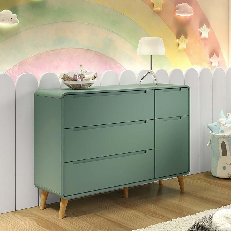 Nosso modelo de cômoda Agatha vai muito além de um design lindo para combinar com a sua decoração. Com travas anti-tombamento e gavetas com corrediças telescópicas, a sua segurança está garantida para você trocar o seu bebê mais à vontade e com todos os acessórios necessários ao seu alcance. Com três gavetas e uma porta, a cômoda fraldário é uma peça fundamental para o dormitório do seu baby ficar completo.