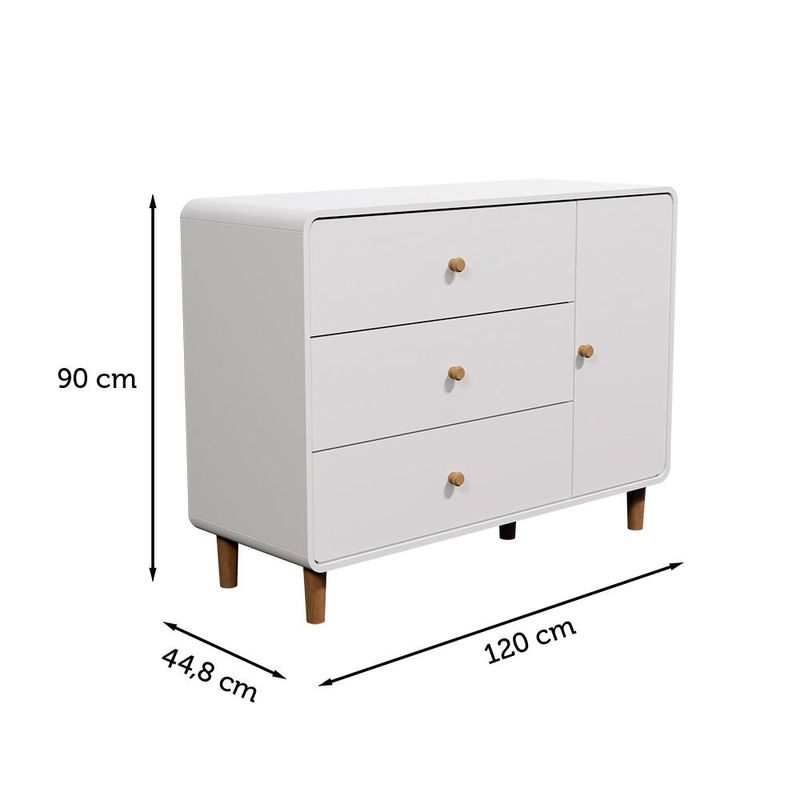 Cômoda Curva 3 Gavetas com Fraldário Jasmin Branco Fosco Carolina Baby