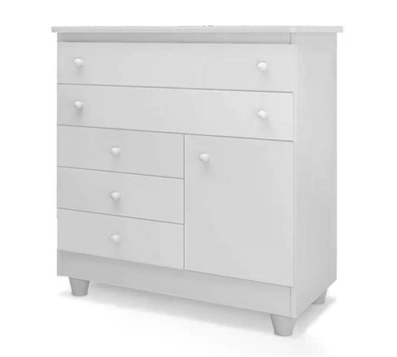 Cômoda Adhara Peternella, moderna e espaçosa, estrutura em MDP bio-sustentável de 15 mm, acabamento em pintura UV (Alto Brilho). Conta com 05 gavetas com corrediças metálicas e 01 porta sapateira com dobradiças metálicas, prateleira interna, puxadores bolinha, é o produto ideal para você que quer aliar qualidade, modernidade e aconchego ao quartinho do (a) seu (a) filho (a). Este móvel chegará em sua casa separado em 02 volumes.