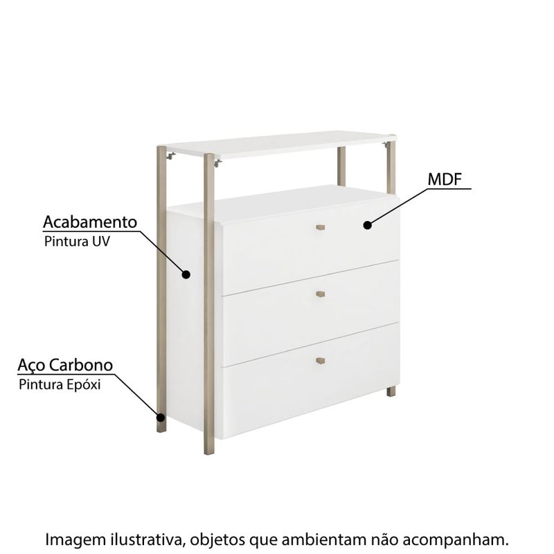 Cômoda Infantil Metalic com 3 Gavetas - Champanhe/Branco