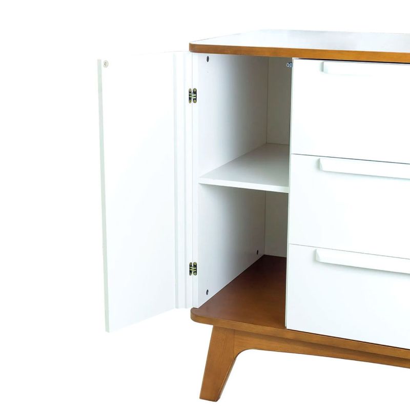 A Cômoda Infantil Sambalelê foi inspirada na decoração moderna, no intuito de trazer aconchego e elegância ao quarto. Uma peça capaz de se adequar com o tradicional ao contemporâneo, sempre com estilo. Sua capacidade interna é dos sonhos, com muito espaço para você guardar todas as roupinhas e objetos do bebê de forma organizada. Com 3 gavetas com corrediças telescópicas e 2 portas. O tampo possui uma cavidade onde pode ser armazenado o kit higiene.