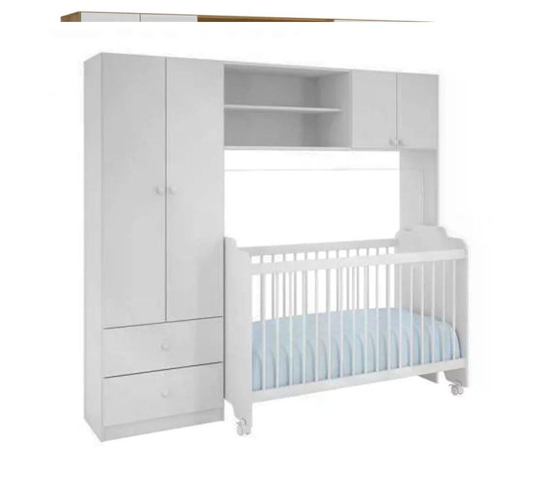 CASAMÓVEIS E ACESSÓRIOSQUARTO COMPLETOConjugado Guarda Roupa Com Berço Ternura 9150 Branco Peternella