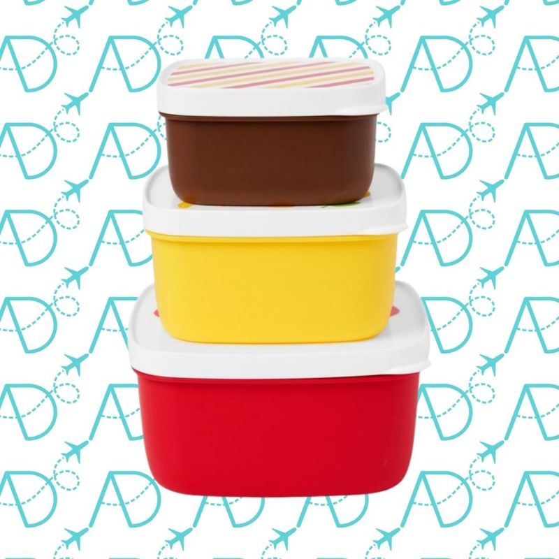 • Inclui 3 caixas de lanche de tamanhos diferentes com tampas