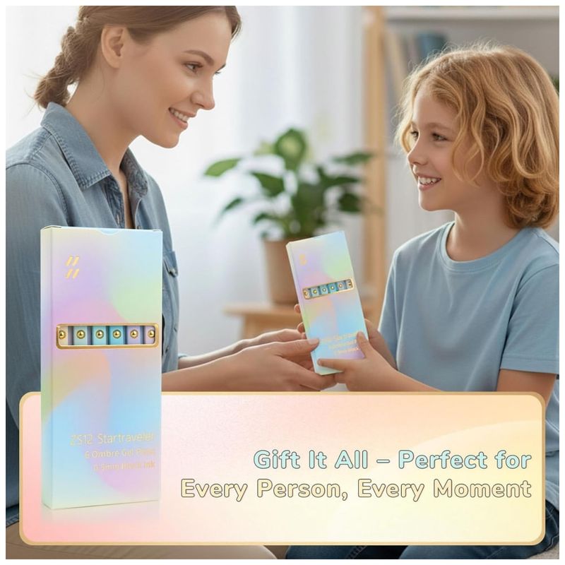 O conjunto de canetas em gel UIXJODO ombré dourado reúne 6 unidades com tinta preta de secagem rápida e ponta fina de 0,5 mm, indicado para escrita em cadernos, agendas, planners e documentos de uso diário. O corpo das canetas possui acabamento degradê em tons dourados com esfera metálica decorativa na extremidade superior, criando um visual moderno para uso em escritório, estudo e home office. A formulação da tinta foi desenvolvida para traço uniforme e nítido, com baixa tendência a borrões, falhas ou sangramento para o verso da folha, favorecendo anotações detalhadas e journaling.