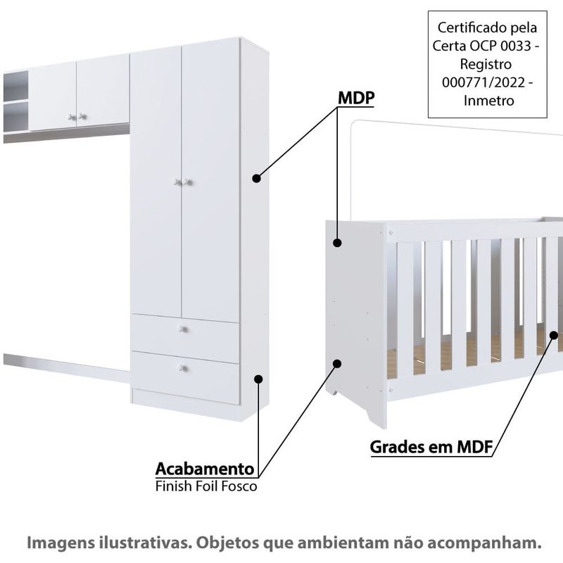 Conjunto Aconchego Berço Mini Cama c/Colchão e Guarda Roupa - Branco