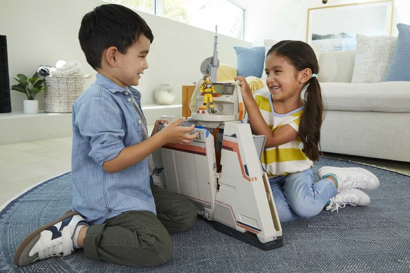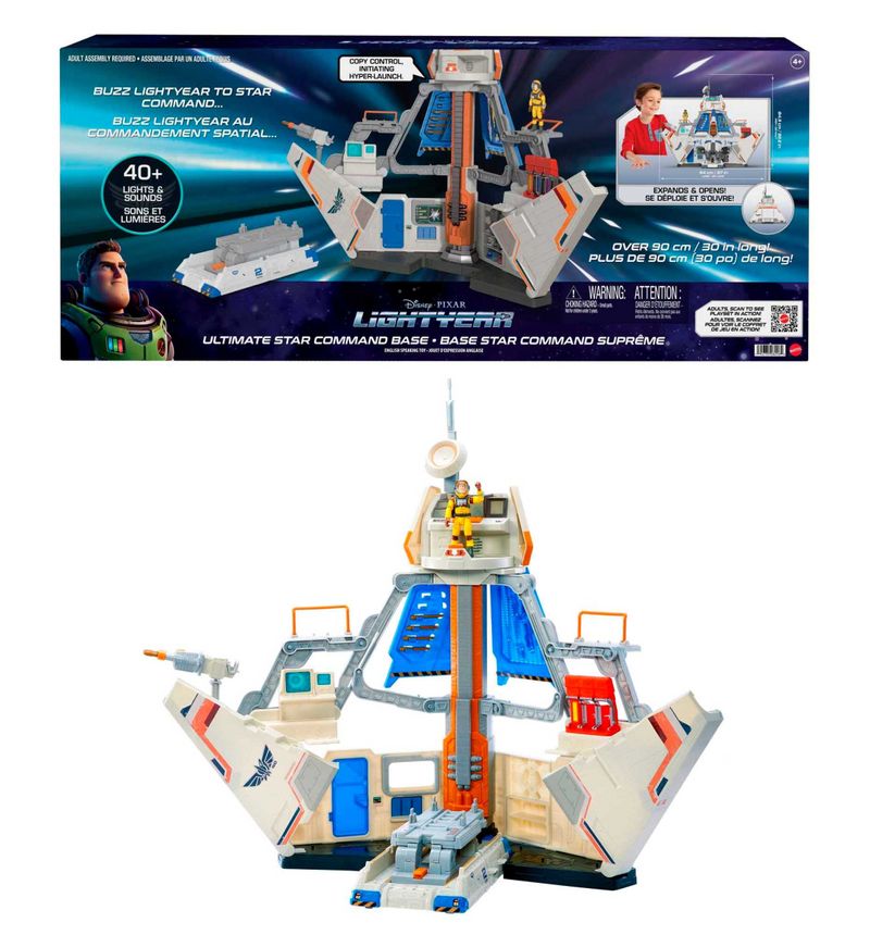 Conjunto Base de Comando Estelar Marca: Mattel Coleção: Lightyear Tamanho: Aproximadamente 94 cm de comprimento. Descubra Lightyear, da Disney e Pixar. Desvende toda a ação e o trabalho em equipe desta emocionante aventura animada com este Playset Base de Comando Estelar definitivo, repleto de recursos. Com mais de 90 cm de largura, ele vem com um veículo Crawler e a figura XL-12 do Buzz Lightyear. A torre de observação principal e o centro de controle com vários monitores ficam no topo, prontos para preencher o ar com frases do Buzz Lightyear, além de efeitos sonoros e luminosos do Comando Estelar para aumentar a emoção. Uma estação de células de combustível e áreas de armazenamento para armas e equipamentos ocupam a ala direita, enquanto um blaster de cano duplo, uma estação de trabalho com computador, uma porta funcional e uma área de armazenamento de projéteis preenchem o lado esquerdo. Plataformas de observação secundárias são encontradas em cada lado. O veículo Crawler está pronto para ser empurrado e também pode levantar qualquer uma das naves espaciais XL do Lightyear em escala de 12,7 cm para a posição de lançamento! Naves espaciais vendidas separadamente e sujeitas à disponibilidade. Cores, dimensões e decorações podem variar.