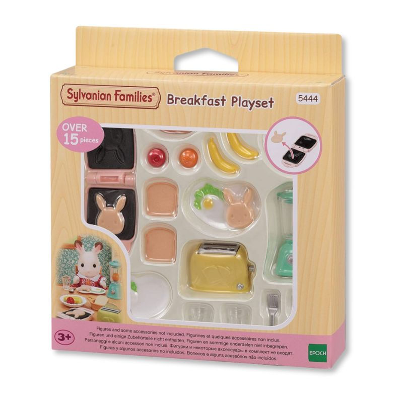 - O Conjunto Café da Manhã inclui comidas para o café da manhã e utensílios de cozinha