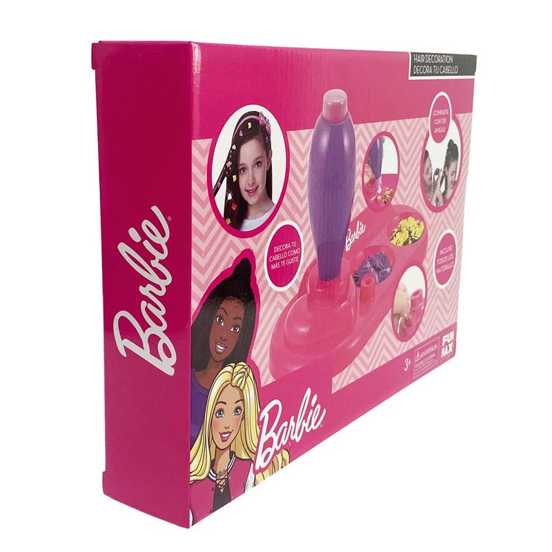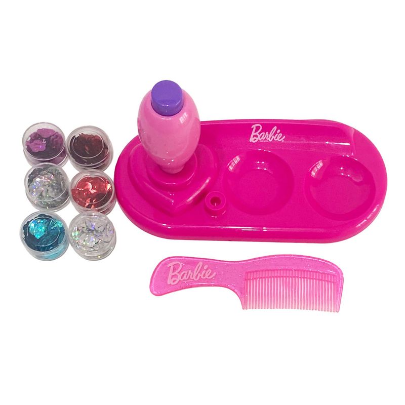 Transforme o visual com muito brilho e diversão usando o Kit Barbie Hair Decoration! Ideal para crianças a partir de 3 anos, este brinquedo permite decorar os cabelos com lantejoulas e glitter de forma prática e segura. Acompanha um aplicador fácil de usar, potinhos com diferentes formas e cores, e um pente Barbie para finalizar o penteado com estilo.