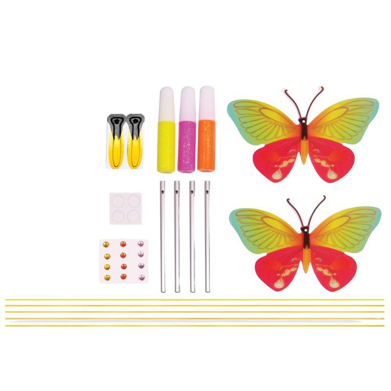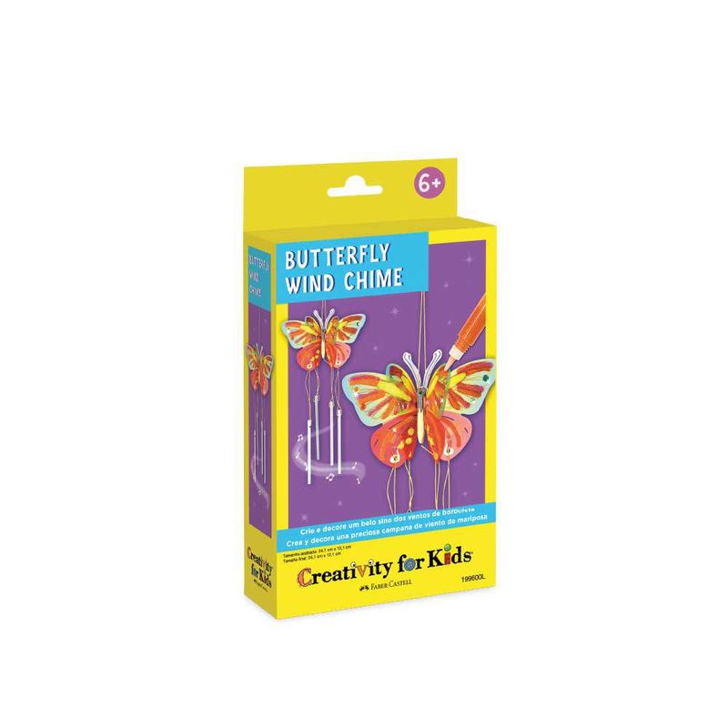 "CRIE SEU SINO DOS VENTOS DE BORBOLETA - esse lindo sino dos ventos de borboleta vem com tudo o que você precisa: sinos de metal, asas de borboleta em acetato, tinta e corda de gel para pendurar.