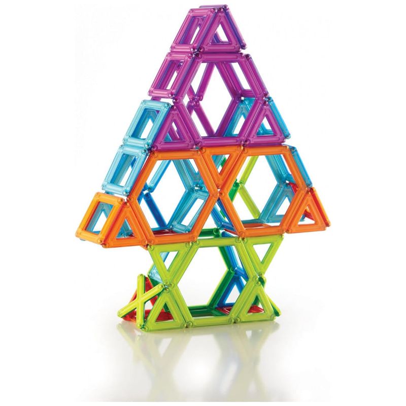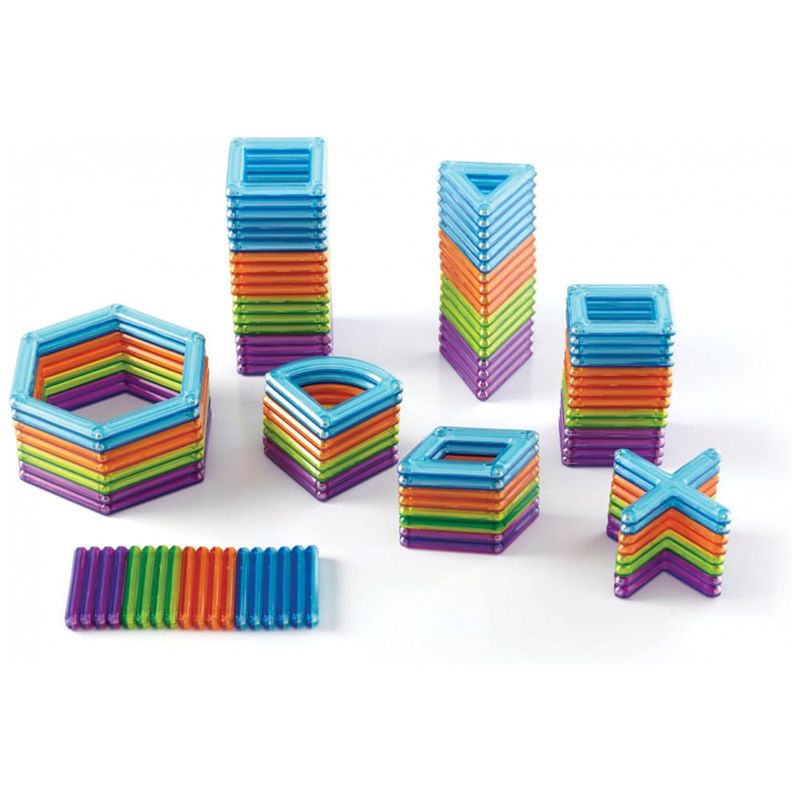 O conjunto Guidecraft PowerClix Frame é um kit de blocos magnéticos projetado para construções abertas em 2D e 3D, estimulando pensamento espacial, criatividade e coordenação motora fina em crianças a partir de 4 anos. As 100 peças em plástico ABS translúcido utilizam ímãs internos com sistema de clique e conexão que facilita o encaixe entre as formas sem repulsão magnética, permitindo estruturas estáveis.?