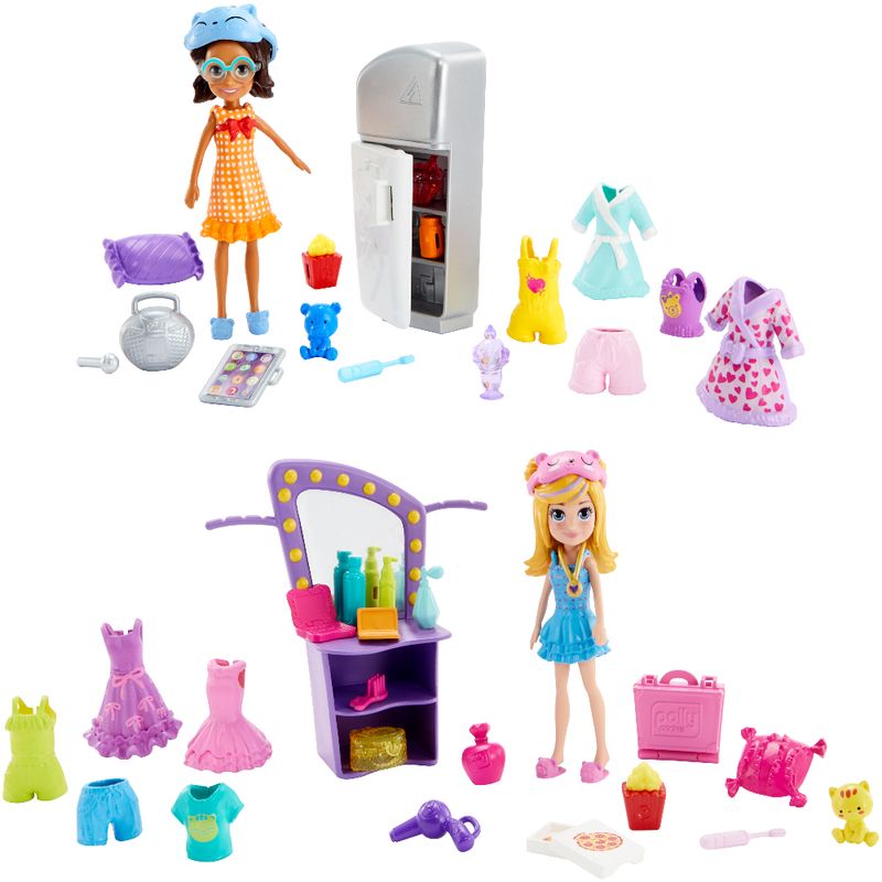 Polly e Shani estão prontas para a melhor festa do pijama de todas! Este pacote com roupas e acessórios vem com as bonecas Polly e Shani usando lindas roupas e mais de 40 roupas e acessórios com tema de festa do pijama! Há pizza e lanches para o jantar, um laptop para navegar na web, uma penteadeira para mudar o visual, um microfone para diversão musical e roupas para a festa do pijama para misturar e combinar! Quando as meninas estiverem prontas para dormir, eles podem escovar seus dentes e, depois, se aconchegar em seus travesseiros, cobertores e bichinhos de pelúcia para ficarem confortáveis! Não se esqueça de colocar as máscaras para os olhos para uma boa noite de sono! O pacote Pajama Jam Party tem tudo o que Polly e Shani precisam para a melhor festa do pijama de todas! Inclui as bonecas Polly e Shani de 7 cm e mais de 40 roupas e acessórios com tema de festa do pijama! Cores e decorações podem variar. A partir dos 4 anos.
