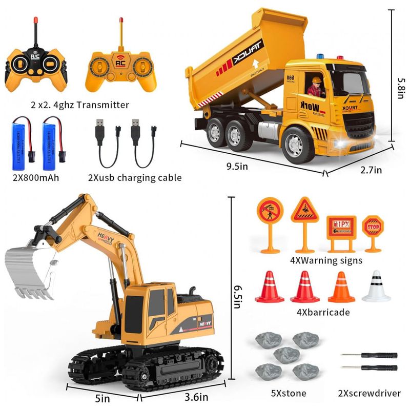 O Conjunto de Brinquedos de Veículos de Construção RC oferece um valor incrível! Inclui 1 Escavadeira RC e 1 Caminhão Basculante RC. Além disso, o conjunto conta com 2 controles remotos, 4 placas de sinalização, 4 barreiras e 5 rochas simuladas. Proporcione uma experiência autêntica com nosso set de construção em metal na escala 1:20. A escavadeira mede 10cm de largura, 23cm de altura e 28cm de comprimento, enquanto o caminhão basculante tem 7cm de largura, 11cm de altura e 24cm de comprimento. Feito de plástico ABS durável, não tóxico, livre de BPA e chumbo, atendendo ao padrão de brinquedos dos EUA. Não possui bordas ou cantos afiados para garantir a segurança das crianças. Além de proporcionar horas de diversão, ajuda a desenvolver a inteligência e a coordenação mãos-olhos. Este Conjunto de Veículos de Construção RC 2 em 1 é o presente perfeito de aniversário e Natal para crianças, sendo ideal para pequenos apaixonados por veículos a partir dos 3 anos. Ótimo para atividades pais e filhos, bem como para brincar com amigos e desenvolver habilidades de cooperação. As placas de sinalização combinadas permitem que as crianças usem a imaginação, simulando cenários reais antes de controlar as máquinas de construção. Adquira já e desfrute de horas de diversão e aprendizado! Novo na embalagem de marca.