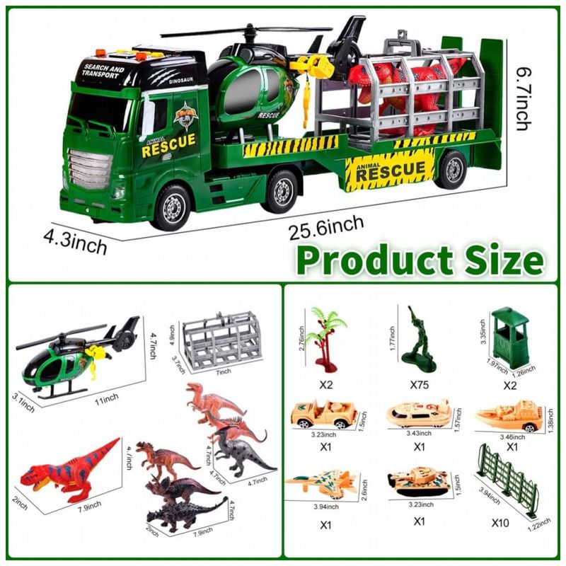 O Conjunto de Brinquedos de Veículos de Dinossauros da ZHFUYS oferece uma experiência incrível com luzes chamativas e sons realistas de dinossauros. Com um helicóptero com hélice manual, as crianças mergulham em aventuras cheias de interatividade. Feito de plástico ABS durável, garantindo segurança, cada acessório é realista e permite que as crianças criem histórias únicas de resgate de dinossauros. Com 103 peças, incluindo caminhão, helicóptero, dinossauros, soldados e mais, estimula a criatividade, habilidades manuais e oferece múltiplas formas de brincar. Ideal para crianças a partir de 3 anos, é o presente perfeito para estimular a imaginação e a educação.