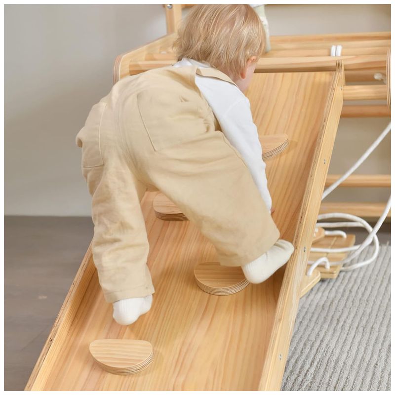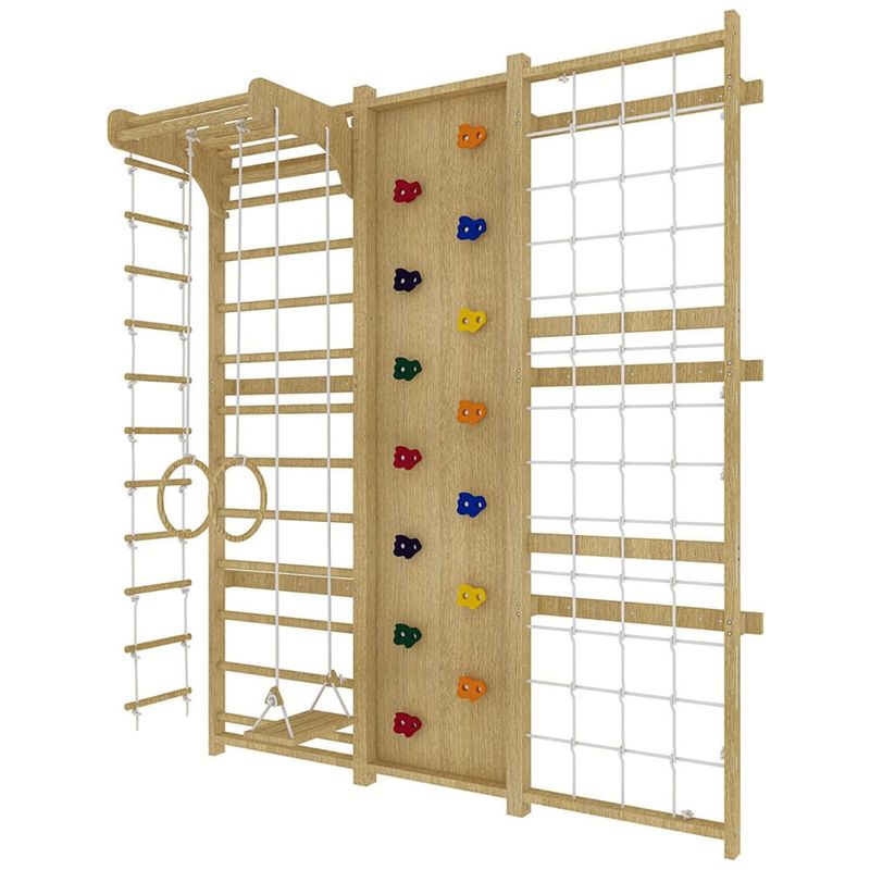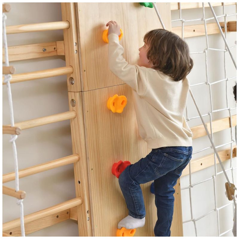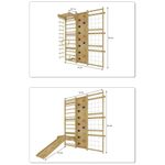 Explore inúmeras aventuras com este versátil ginásio de escalada indoor 'jungle gym'! Projetado para estimular a exploração e o jogo, possui balanço de trapézio, escada de corda, parede de escalada, rampa, escorregador, barra de pull-up e muito mais. Mantenha as crianças engajadas e ativas por horas! Construção Premium: O ginásio de escalada indoor suporta até 100kg por pessoa e uma capacidade total de 227kg, sendo construído com madeiras de faia e pinho resistentes e confiáveis. Pegada Segura e Confortável: Nosso ginásio de escada sueca oferece degraus arredondados e barras que proporcionam uma pegada segura e confortável para todas as idades, garantindo estabilidade durante o uso. Fácil de Montar e Design Compacto: Com instalação simples e ferragens inclusas, este equipamento de ginásio é adequado para diversas configurações, como lares, salas de jogos ou espaços profissionais. O design compacto economiza espaço ao oferecer uma área dedicada para brincadeiras ativas. Treino Completo: Desfrute dos benefícios de um treino completo com nosso versátil ginásio de escada sueca indoor, ideal para crianças, adolescentes e adultos, tudo no conforto da sua casa. Da força à flexibilidade, nossa parede sueca tem tudo o que você precisa.