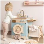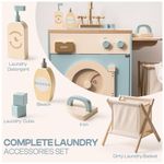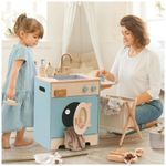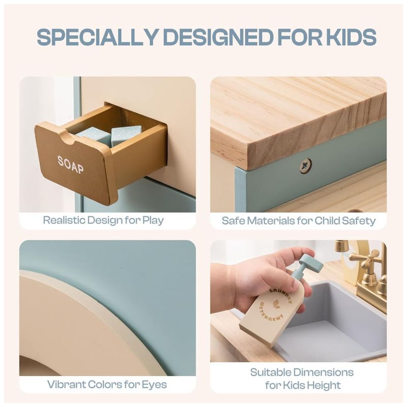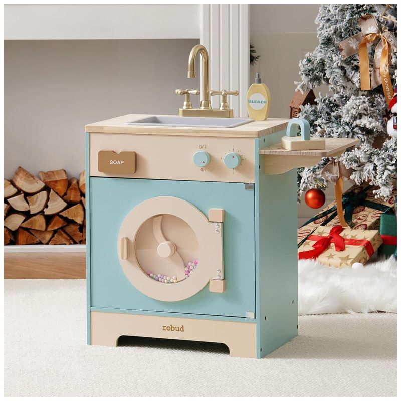 Desenvolvida para simular uma máquina de lavar real, esta máquina de lavar possui um design encantador, com contas coloridas manualmente moveis na janela, imitando o movimento de rotação de uma máquina de lavar, cativando visualmente as crianças. Acompanha cesto de roupas sujas, sabão, alvejante e detergente, aumentando a experiência de jogo. Além disso, possui função de passar roupas, adicionando versatilidade à máquina de lavar. Feita com materiais de alta qualidade, refletindo o compromisso com a excelência e a artesanía requintada da marca ROBUD. Cada detalhe é meticulosamente projetado e selecionado para garantir a durabilidade e a experiência ideal de uso. Esta máquina de lavar vem com uma variedade de acessórios para aprimorar a experiência de jogo das crianças, incluindo detergentes, alvejante, sabão, tábua de passar, ferro e cesto de roupas sujas. Uma ferramenta educativa interativa que ajuda as crianças a aprender habilidades essenciais da vida. Ideal como presente, além de alegria às crianças, transmite uma mensagem de cuidado e preocupação com o bem-estar delas.