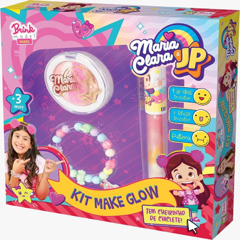kit make glow tricolor maria clara da brink model, um lindo kit de maquiagem composto por 1 blush tricolor, 1 lip gloss tricolor e uma linda pulseira, dermatologicamente testados, aprovado pela anvisa, as meninas vao adorar se produzir e se divertir com o kit de maquiagem da sua youtuber favorita.