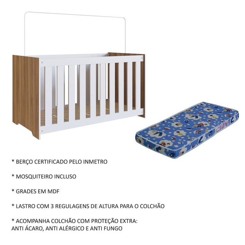 Conteúdo da Embalagem: 1 Guarda Roupa, 1 Berço, 1 Colchão.