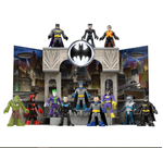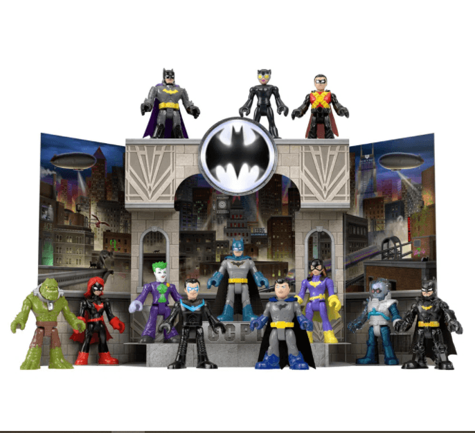Os jovens justiceiros podem abrir a embalagem e criar suas próprias aventuras do Batman™ cheias de ação com o conjunto surpresa Imaginext® DC Super Friends™ Gotham City™ da Fisher-Price. As crianças podem abrir as portas secretas do conjunto para descobrir as 3 figuras misteriosas e 2 acessórios escondidos dentro. Em seguida, abra o conjunto dupla face para criar o palco para a incrível ação de super-herói contra supervilão no centro de Gotham City™, na frente ou em Park Row, na parte de trás. Com 4 conjuntos de personagens para colecionar, não há como dizer quais miniaturas surpresa as crianças encontrarão dentro! Imaginext® Um Mundo de Aventuras!™