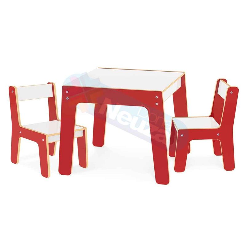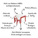 Conjunto de Mesa com 2 Cadeirinhas Infantis da Junges em madeira de reflorestamento (MDF) com pintura atóxica. Produto resistente, ecológico, prático e fácil de montar (acompanha kit de montagem com chave).