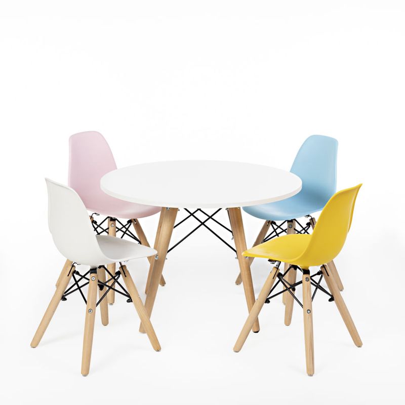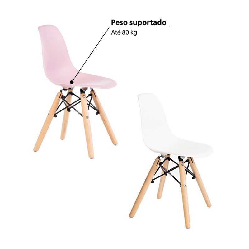 O Conjunto Eifflel com 4 cadeiras conta com um design moderno e divertido e por ser muito resistente permite que os pais possam participar das brincadeiras e aproveitar os momentos de diversão e aprendizado ao lado dos baixinhos. O produto é produzido com polipropileno com os pés em madeira, garantindo maior durabilidade.