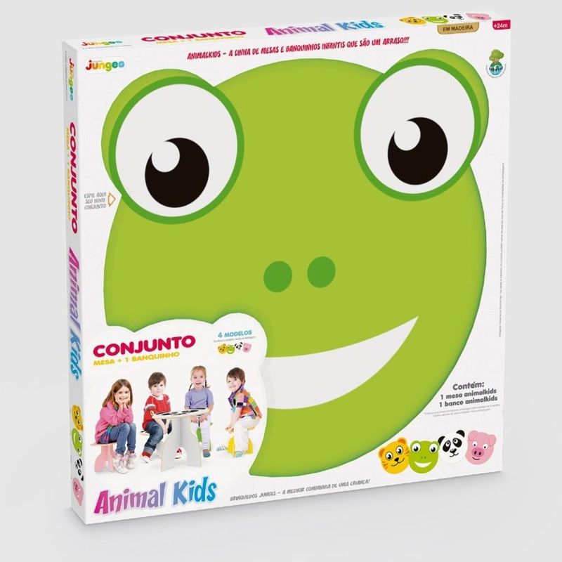 DESCRIÇÃO DO PRODUTO: Conj. Mesa +Banco Animalkids da Junges em madeira de reflorestamento (MDF).