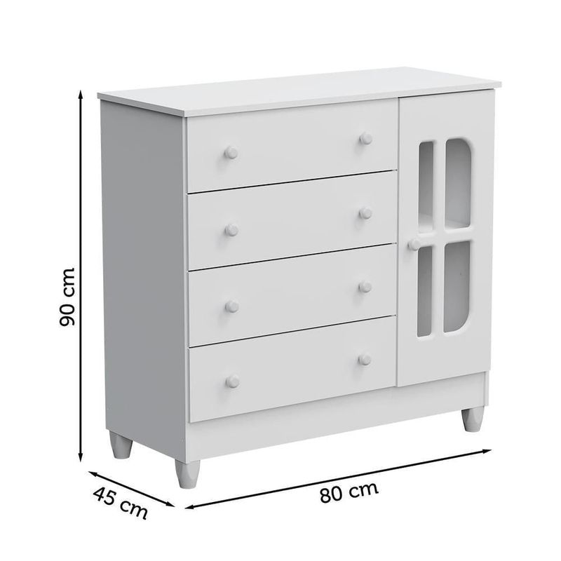 Quarto de Bebê Guarda Roupa 4 Portas Cômoda 4 Gavetas com Fraldário Gabrielle Berço 3 em 1 Lara Branco Carolina Baby