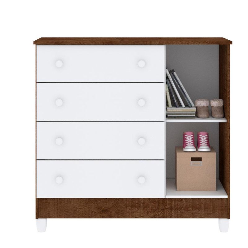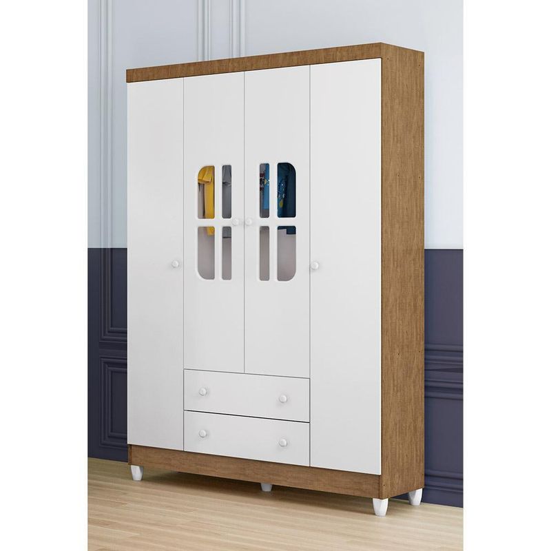 Quarto de Bebê Guarda Roupa 4 Portas Cômoda Gabriele Berço Mini Cama Mirelle Branco Amadeirado Carolina Baby