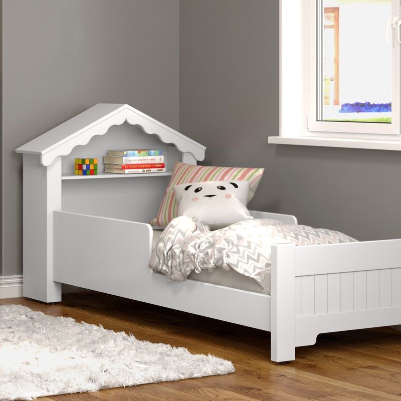 A Cama Infantil é produzida em MDF, possui uma Casinha como cabeceira que contém 1 Prateleira. A Cama Infantil possui detalhes em Ripas.