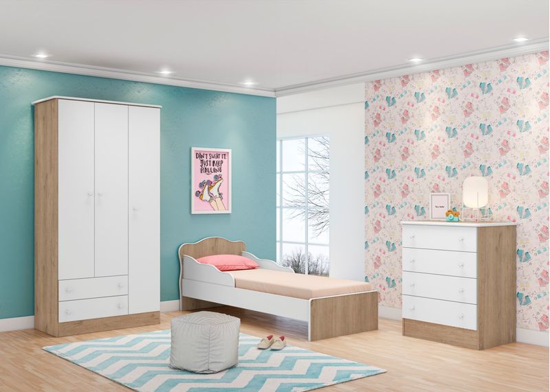 Conjunto Quarto Infantil Villae Carvalho Rústico Branco