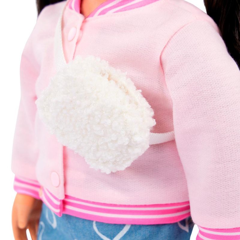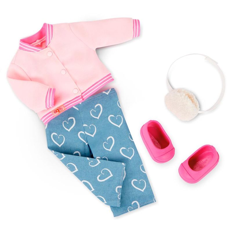 O Conjunto de Roupa Escolar Our Generation Jaqueta Universitária traz estilo e conforto para as bonecas de 46 cm curtirem o dia a dia na escola com muita personalidade. Com uma jaqueta universitária rosa claro que une charme e modernidade, este look inclui calça jeans com estampa de coração que adiciona um toque divertido e delicado. A sapatilha rosa combina perfeitamente para garantir conforto e elegância, enquanto a shoulder bag de pelinho branca completa o visual com um detalhe fofo e fashion. Fácil de vestir e compatível com a maioria das bonecas Our Generation, esse conjunto é ideal para estimular a imaginação e criar histórias incríveis no universo escolar, proporcionando momentos de brincadeira cheios de estilo e criatividade.