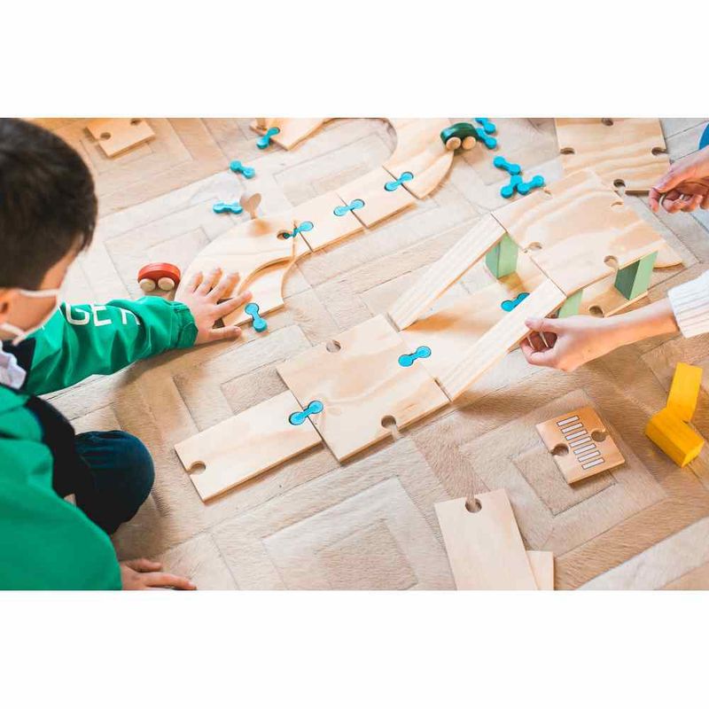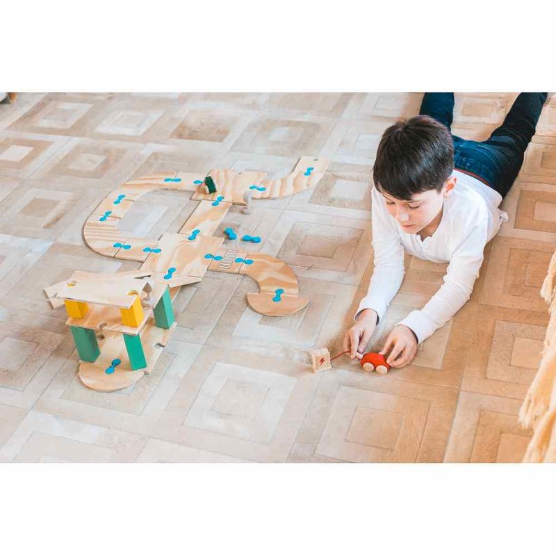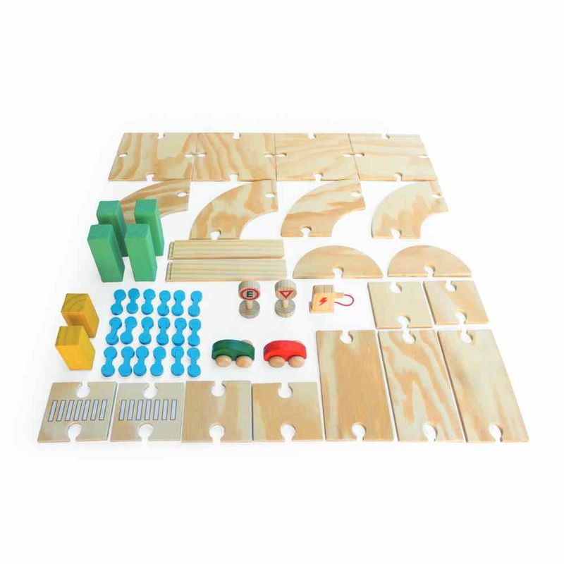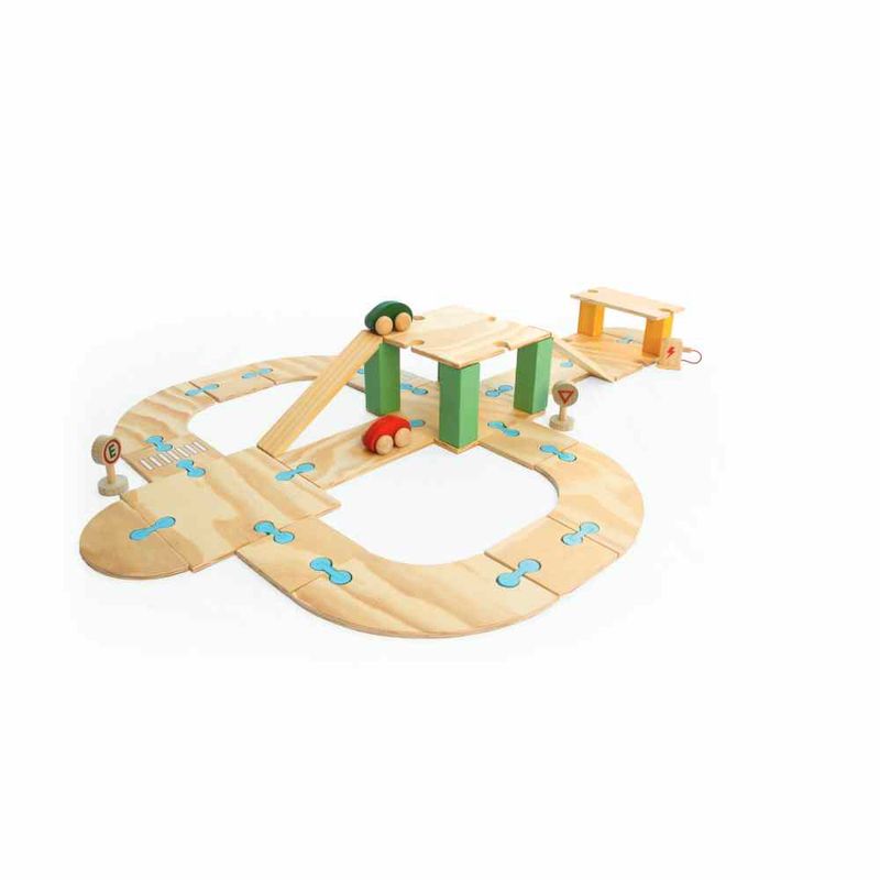 Este brinquedo permite que a criança crie sua própria estrada e aventure-se por onde a imaginação levar! Composto por 2 carrinhos, 2 sinais de trânsito, 1 bomba de abastecimento, 19 peças da estrada, 18 engates e 6 peças de apoio. Com a combinação de peças, é possível construir diferentes rotas e formatos.