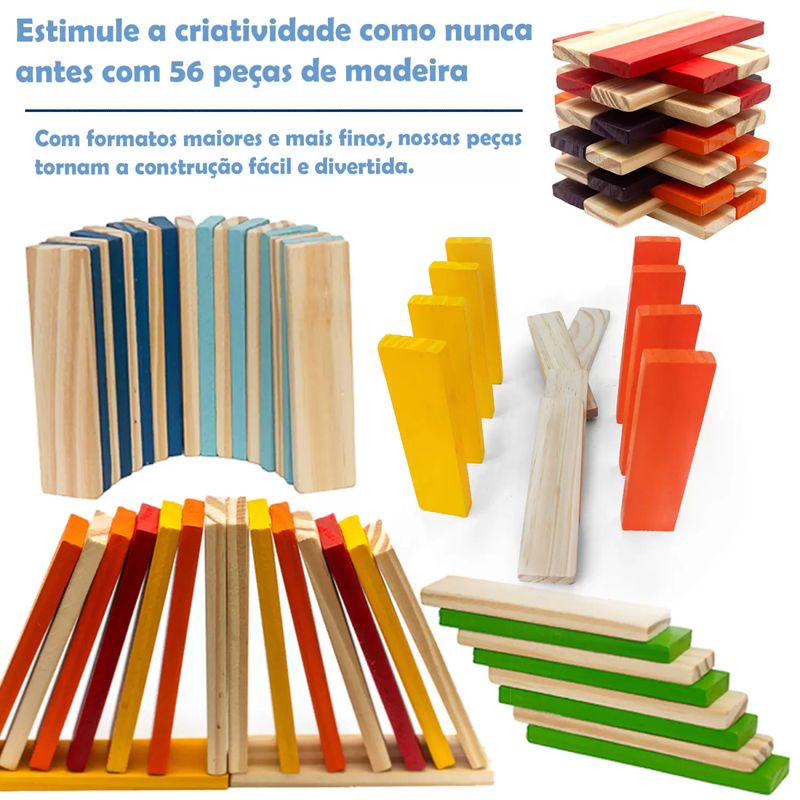 CONSTRUINDO COM PLACAS 56 PEÇAS MADEIRA MACIÇA EDUCATIVO