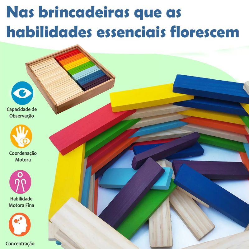 Possibilidade de equilibrar e montar em outros formatos, incentivando a criatividade e imaginação.