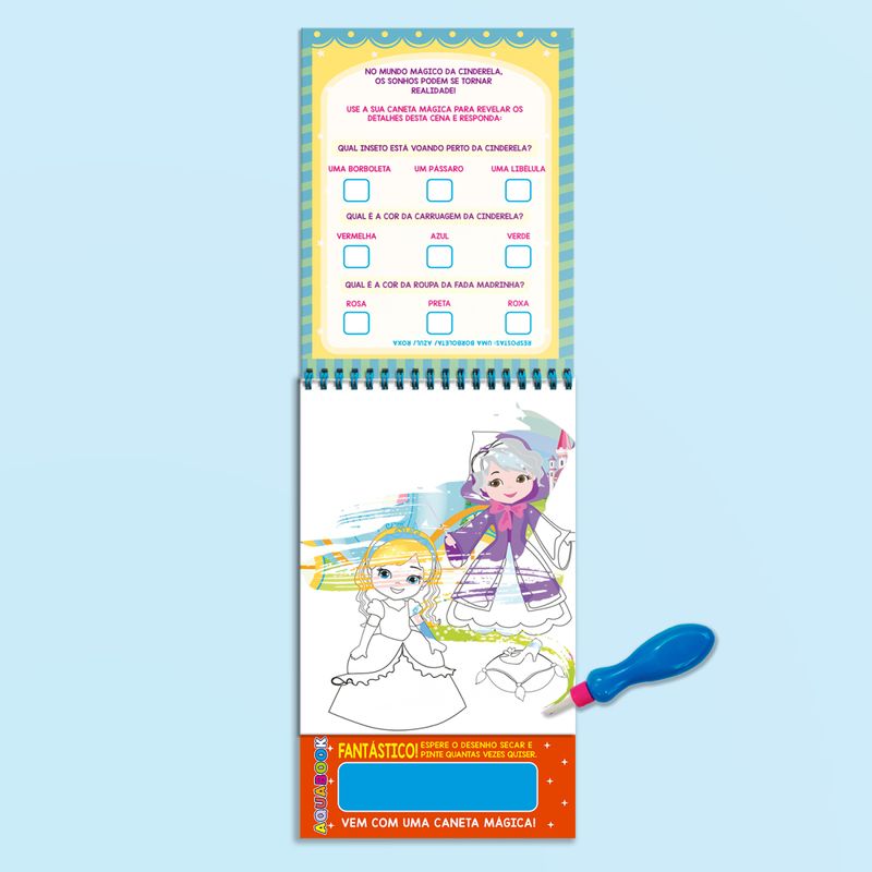 As fadas mais lindas aguardam pelo seu colorido para deixar o reino delas ainda mais lindo e encantado com este aquabook. Basta colocar água no pincel mágico para ver a mágia acontecer.