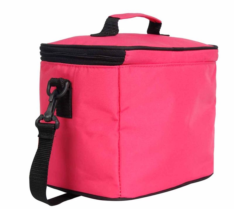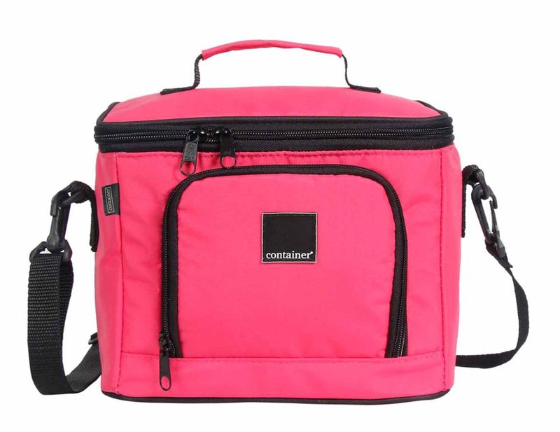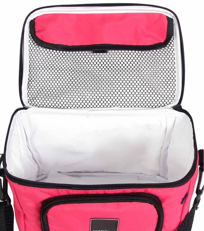 Possui alça de mão e alça tiracolo. Foi desenvolvido em material lavável e isolante térmico.