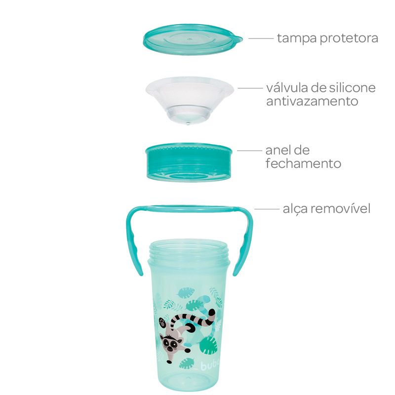 COPO 360 DE TREINAMENTO BEBE ANTIVAZAMENTO TRANSIÇÃO INFANTIL COM ALÇA BUBA Cor:Lemure