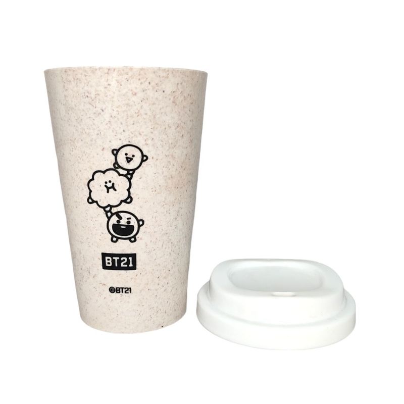 CARACTERÍSTICAS DO PRODUTO Marca: Beekid Comprimento x Altura x Largura: 7cm x 13cm (c/ tampa) x 7cm Composição: Fabricado em PP e Fibra de madeira. Peso: 78g Cor: Branco e Bege Sku: 051CT EAN (Código de barras): 7898952468244 Recomendado acima de 4 anos Detalhes: Capacidade: 320ml Possui tampa com abertura para beber o liquído Vedação por pressão Reutilizável Não é térmico Selo Line Friends Instruções de uso: Pode ser utilizado tanto com bebida quente ou fria. Não é um copo térmico, segura a temperatura da bebida no máximo 1 (uma) hora. Instruções de lavagem: Lave usando apenas água, sabão ou detergente. Lavar apenas com o lado da esponja macia. BTS, também conhecido como Bangtan Boys, é um grupo sul-coreano formado pela Big Hit Music. Ele é composto por sete membros: RM, Jin, SUGA, J-Hope, Jimin, V e Jungkook. BT21 são os novos mascotes de cada membro do Bangtan. Como são sete membros, o mesmo acontece com seus mascotes. E cada um deles criou o seu próprio.