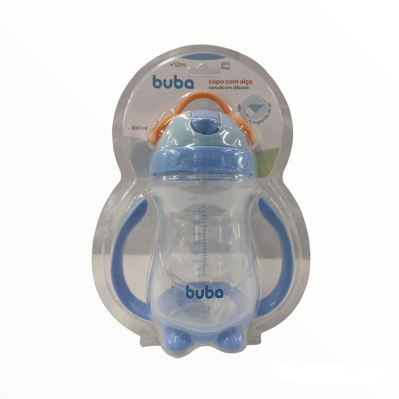 Esse copo permite que seu bebê possa beber o liquido em qualquer ângulo, deitado ou em pé. Possui alça Canudo pêndulo Valvula anti-ingestão de ar Livre de BPA Indicação: 12m+ Capacidade 300ml Marca Buba Não derrama ao virar para baixo