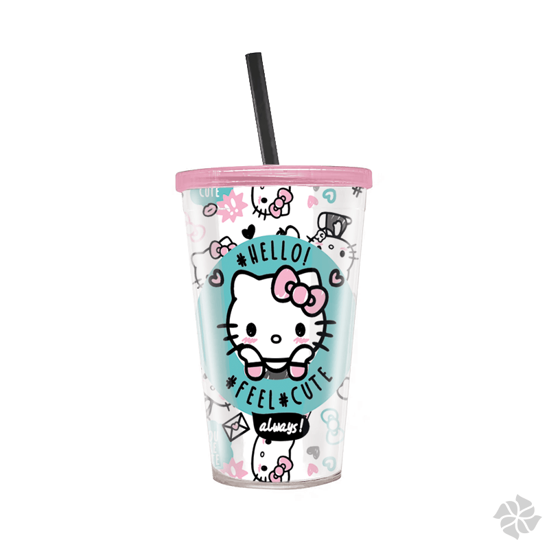 É sempre bom estar hidratado e tomando alguma bebida, para participarmos dessa parte da sua vida, desenvolvemos nossa linha de copos com canudo super estilosos, com base na séria animada da Hello Kitty, para deixar o momento de beber alguma coisa ainda mais especial e divertido, afinal, você vai estar acompanhado da gatinha mais querida do Mundo!