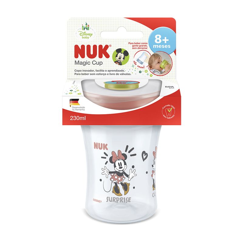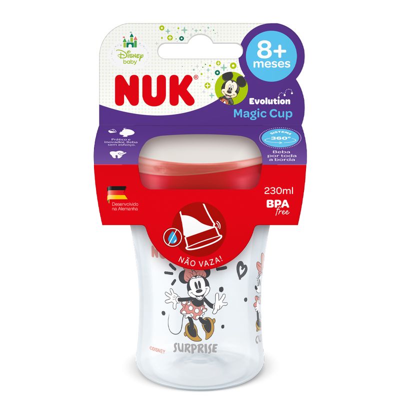 O Copo Magic Cup 360° NUK Evolution 230ml foi especialmente desenvolvido para ensinar a criança a beber de forma independente e incentivar um dos momentos mais importantes no desenvolvimento do bebê, além de contribuir com suas habilidades manuais possibilitando à criança o uso de um copo semelhante ao usado pelos seus pais e com a segurança de não se sujar ou quebrá-lo. Seu sistema 360º garante a ingestão de líquido sem esforço, aliado a uma eficaz estrutura antivazamento por toda a sua borda. O copo é intercambiável e permite que o bebedor e rosca possam ser utilizados em todos os frascos da linha NUK Evolution. É recomendado para crianças a partir de 8 meses de idade. Produto livre de BPA.