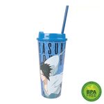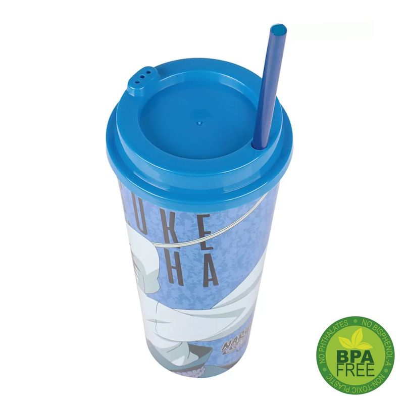 Você que é fã do anime Naruto não pode deixar de ter esse copo com tampa canudo e fita do personagem Sasuke Uchiha. O copo é feito de plástico e poliéster acetinado não possuindo Bisfenol A em sua composição (BPA Free). Cuidados: Lavar com água, esponja macia e sabão neutro. Licenciado Clube Comix by Piticas.