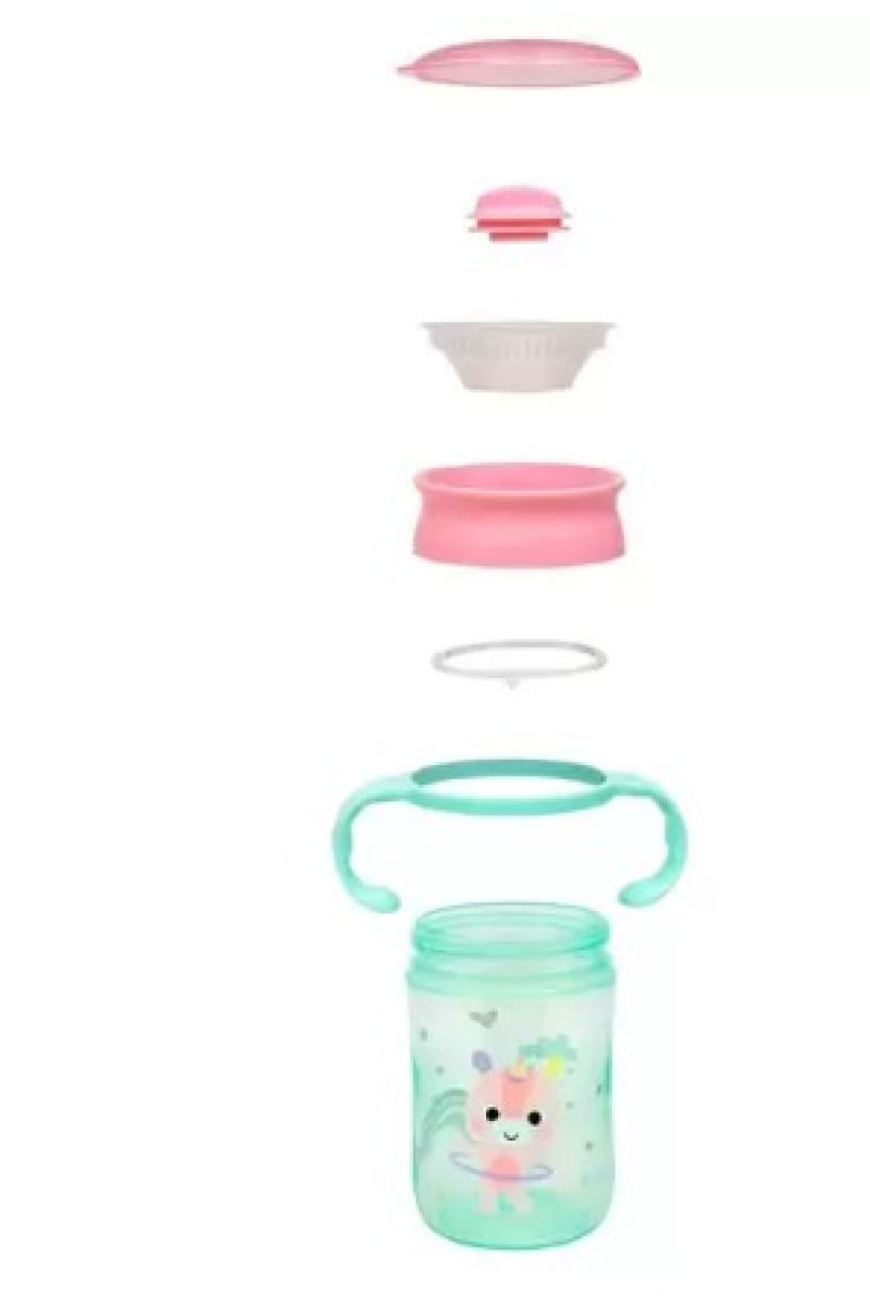Com um design inteligente, este copo gira 360 graus sem derramar uma única gota. Seu bebê pode beber de qualquer lugar ao redor da borda, como se estivesse bebendo de um copo de verdade. A válvula de silicone antivazamento com trava removível oferece controle total sobre o fluxo de líquido, permitindo uma transição suave da mamadeira para o copo.